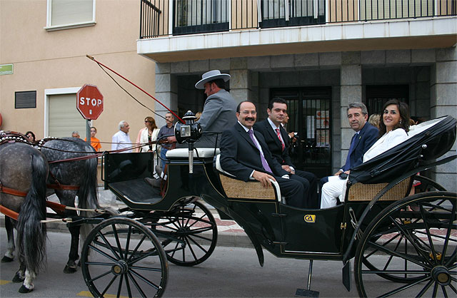 El consejero de Agricultura y Agua, Antonio Cerdá, inauguró anoche la IV edición de la Feria de Ganados, que se celebra hasta mañana en Fuente Álamo. El titular de Agricultura, acompañado por la alcaldesa de Fuente Álamo, Maria Antonia Conesa; el director general de Ganadería y Pesca, Adolfo Falagán; y el concejal de Agricultura, Ganadería y Agua, Bartolomé Rabal, se dirigieron en carruaje hasta el Recinto Ferial, donde visitaron las instalaciones y los más de 600 animales que reúne este evento ganadero. Asimismo, se entregó la Mención de Honor como colaboradores de la Feria a Antonio Cortés y Luis Santiago.