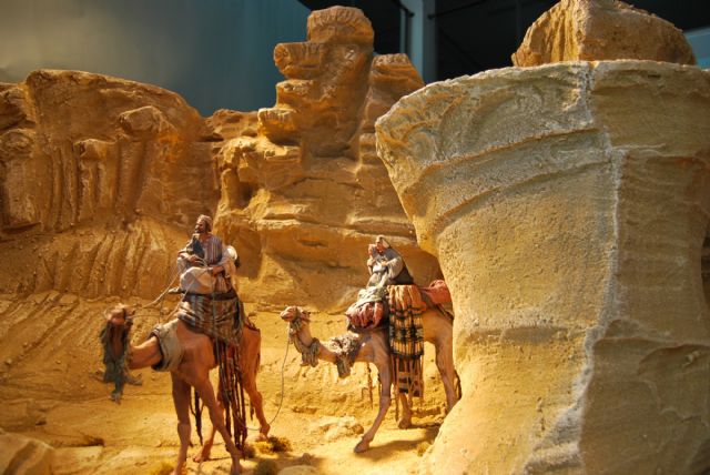 La Asociación de Belenistas de Fuente Álamo ha escogido “La Ciudad Encantada” de Bolnuevo para representar el momento bíblico en el que José y María huyen a Egipto con el niño en brazos.