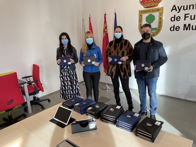 El Ayuntamiento de Fuente Álamo de Murcia ha hecho entrega hoy de 30 tablets al centro de estudios CEIP José Antonio del municipio de la Comarca de Cartagena, que se suman al centenar de dispositivos electrónicos que el año pasado recibieron los y las estudiantes de todos los centros educativos del municipio.