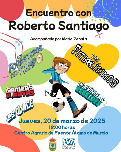 Fuente Álamo acoge el próximo día 20 de marzo la visita del exitoso autor, Roberto Santiago, para tener un encuentro con los lectores del municipio, en especial con los más jóvenes. El evento se celebrará en el Centro Agrario de la localidad (Gran Vía Mártires del Castillo de Olite, 44) a las 18.00 horas. Este encuentro está organizado por la concejalía de Cultura de dicho municipio y está presentado y coordinado por la periodista y escritora Lola Gracia. La entrada es libre hasta completar aforo.